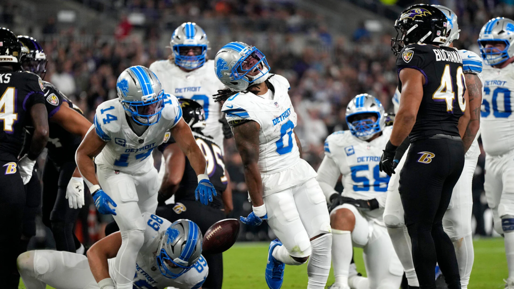 Amon-Ra St. Brown led the Lions with 77 yards, while Mark Andrews led the Ravens with 91 yards.